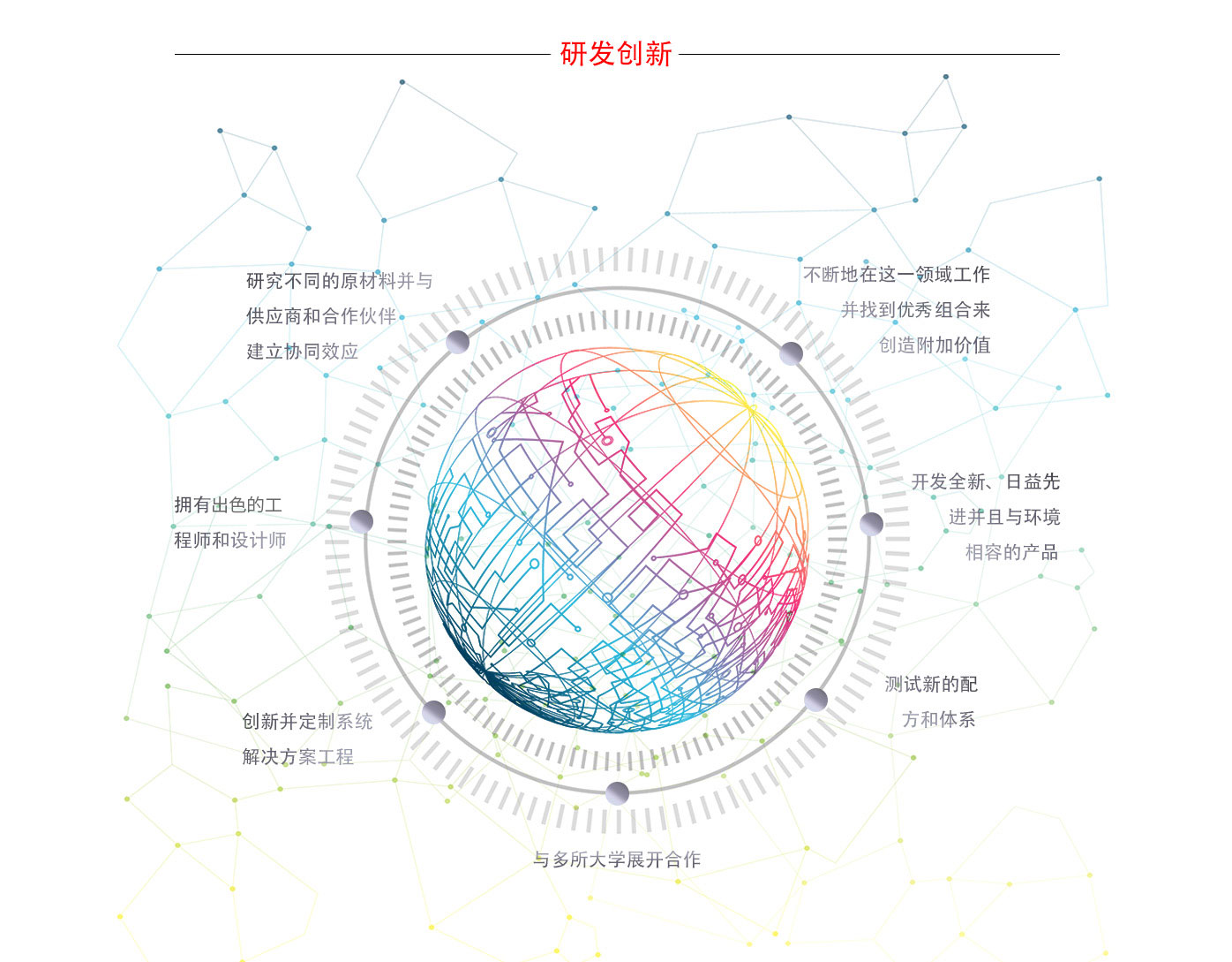 研究和開發是寶潤達文化不可或缺的組成部分。在競爭日益激烈、經濟不穩定的世界形勢下,創新和為客戶尋找解決方案的能力是我們 的目標。因此,寶潤達才會在研究方面投入人力、時間和金錢。我們的工作向所有方向延伸,并非限定在建材產品。真正的創新是符合我們的全球化理念;