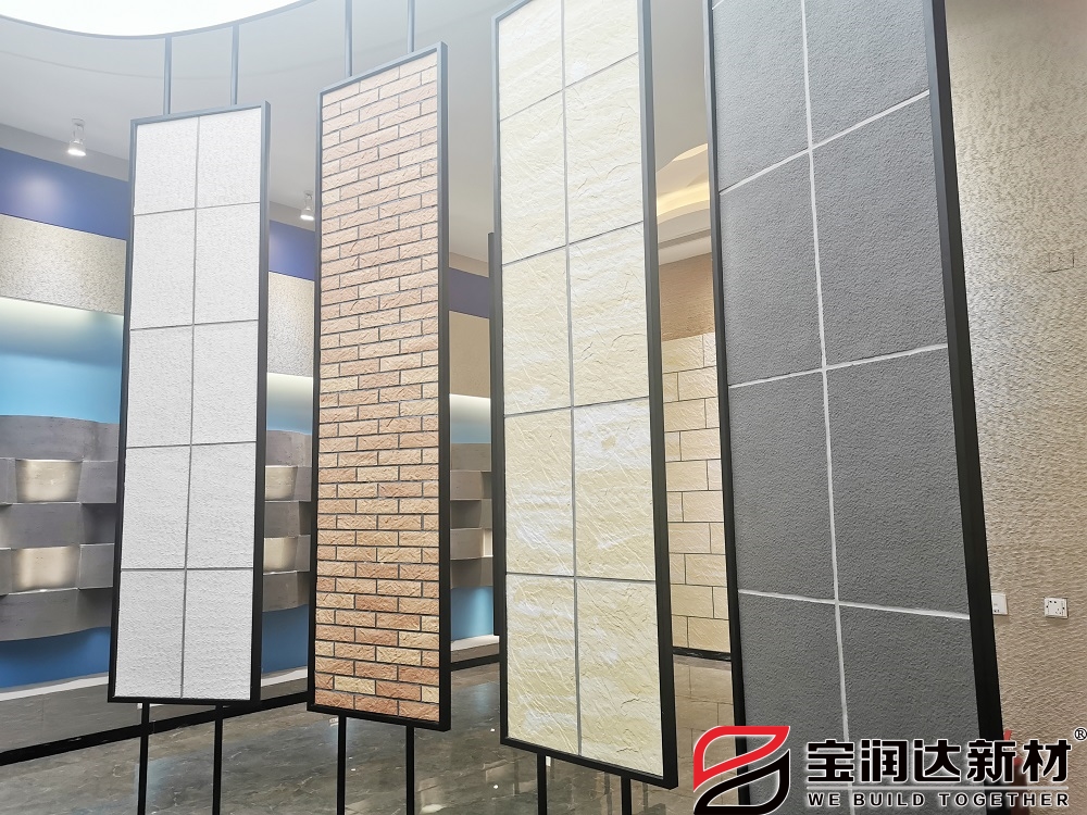 成分為無機材料,顏色來自材料本身,都為純天然色彩,顏色自然持久,不會因紫外線照射或其他外界自然條件而出現褪色。產品本身也不會出現起鼓、脫落、粉化等老化現象,有著優秀的耐久性能,可以通過國家相關檢測中心2300h的耐候實驗,遠遠高于國家行業標準柔性飾面磚所規定的。寶潤達軟瓷樣式齊全,種類多樣,可仿多種精美面材。