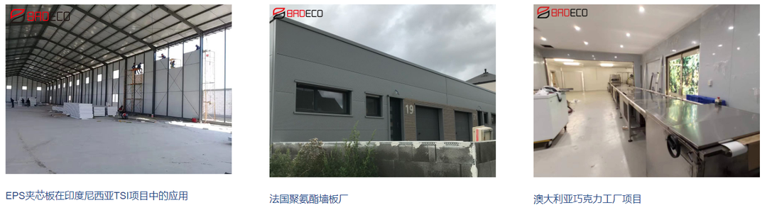目前公司產品遠銷美國、意大利、菲律賓、新西蘭、越南、泰國、馬來西亞、澳大利亞、孟加拉國、印度、泰國、毛里求斯等多個國家,主營的外墻保溫一體板、聚氨酯復合板、鋼制復合板、門系統、真金板、無菌凈化板等產品均得到了國際廣泛應用。