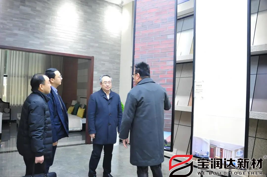 2月16日,懷寧縣委書記余學峰、懷寧縣政府副縣長譚憲鋒、懷寧縣縣委辦主任劉勁松、懷寧縣招商中心副主任關飛一行蒞臨寶潤達進行調研,寶潤達新材總經理朱正葉、總經理助理張曉光熱情接待。